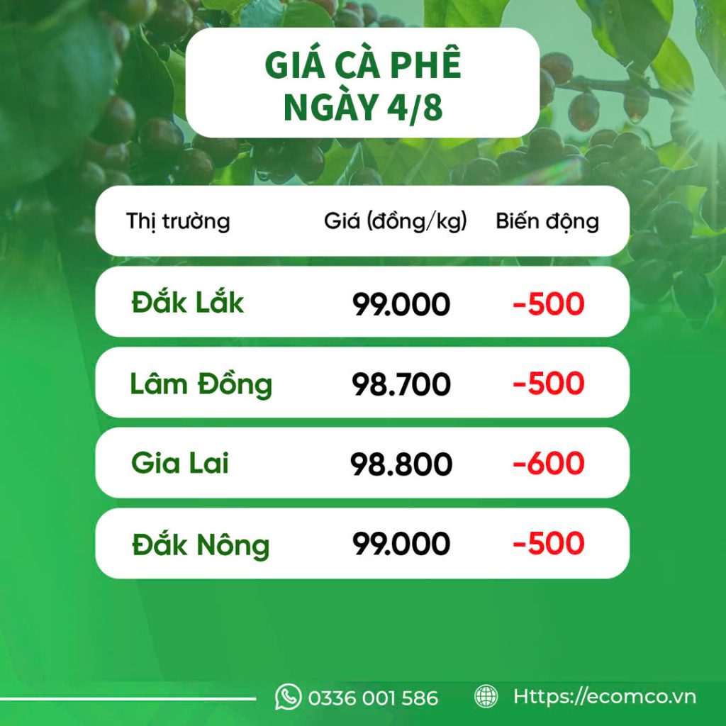 Giá cà phê ngày 04/08/2025 giảm nhẹ nhưng chưa đáng lo ngại. Xu hướng điều chỉnh này có thể chỉ là tạm thời trước khi bước vào đợt tăng mới vào giữa hoặc cuối tháng 8. Bà con cần bình tĩnh, không nên bán tháo vội vàng. Theo dõi sát tình hình thời tiết, thông tin xuất khẩu và diễn biến thị trường thế giới sẽ giúp đưa ra quyết định chính xác hơn.
